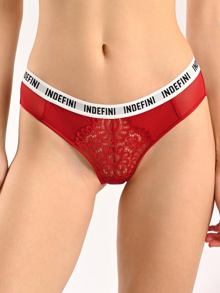 Женские кружевные трусы-слипы Indefini — воплощение элегантности и комфорта в каждой детали. Модель выполнена в насыщенном красном цвете и украшена кружевным узором, который придает изделию особый шарм.
