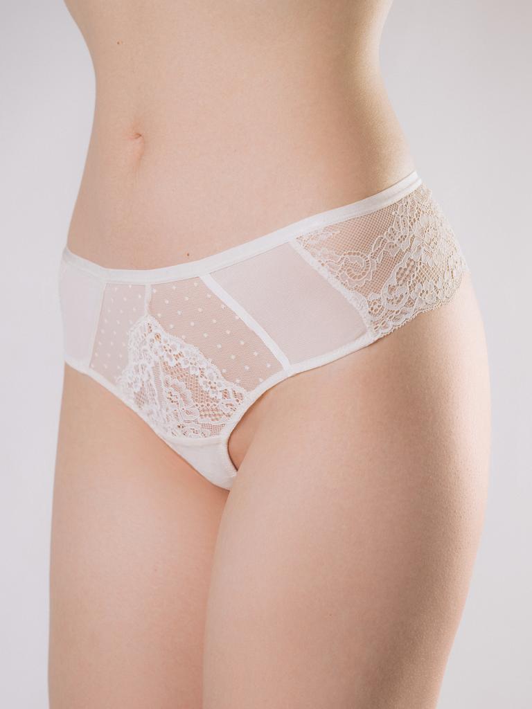 Изысканные стринги из тонкого кружева белоснежного оттенка, создающие эффект нежности и женственности.
