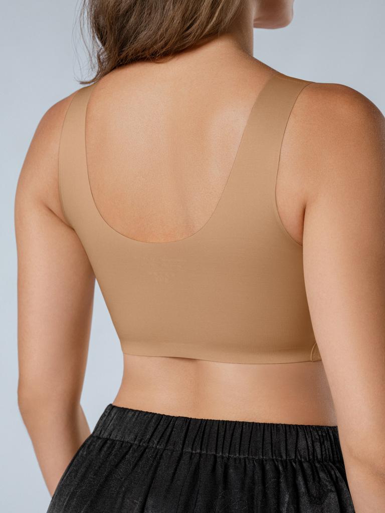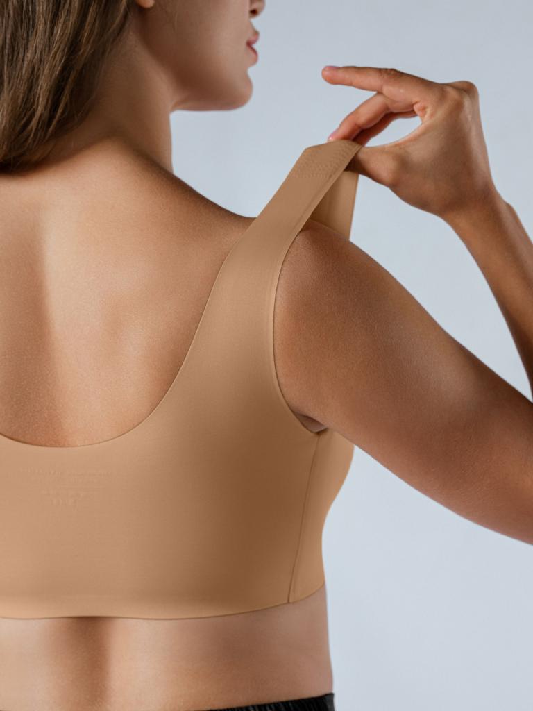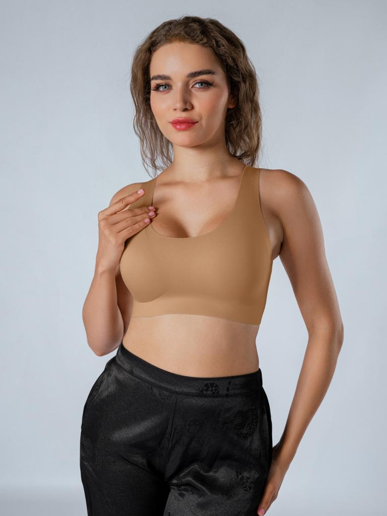 Бесшовный бюстгальтер без косточек из полиамида обеспечивает отличную поддержку груди в течение всего дня. Отсутствие швов делает данную модель незаметной под одеждой. Широкие бретели равномерно распределяют нагрузку на плечи, снижая риск возникновения дискомфорта и боли в этой области. Внутри имеются мягкие съемные поролоновые чашки без Push-Up. Благодаря широкой эластичной резинке снизу изделие надежно фиксируется на теле и не сползает.