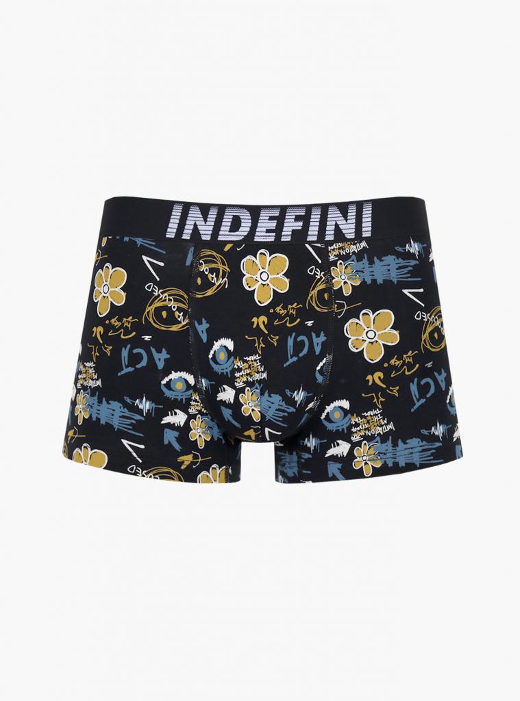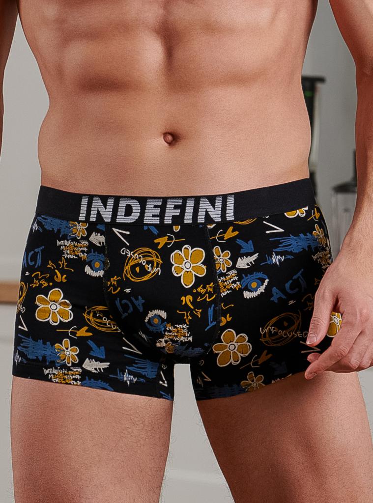 Мужские трусы от торговой марки Индефини. Трусы-боксеры (Арт. 631000-2117MUF) из хлопка, черного цвета, с принтом, на мягкой резинке. Они обеспечивают приятное ощущение на коже благодаря использованию натурального материала, а их удобная посадка и эластичная талия обеспечивают комфорт при ношении. Мультиколорный дизайн придаст им модный и современный вид, делая их стильным аксессуаром для вашего гардероба. Сочетание комфорта, стиля и модности делает эти трусы идеальным выбором для современного мужчины.