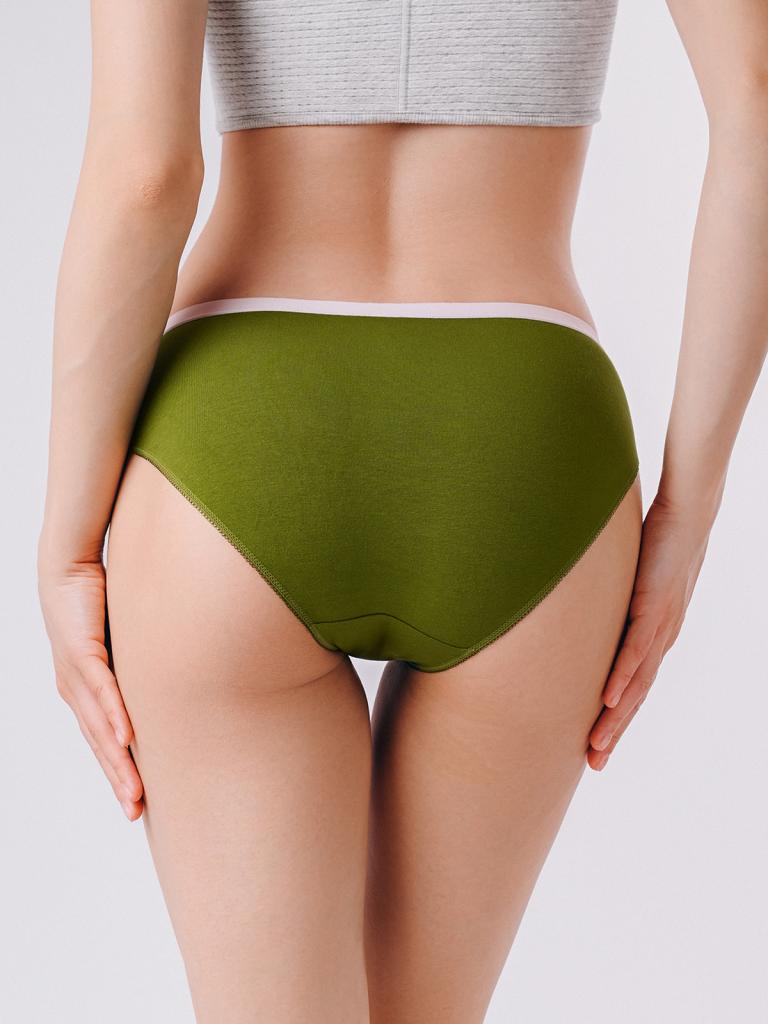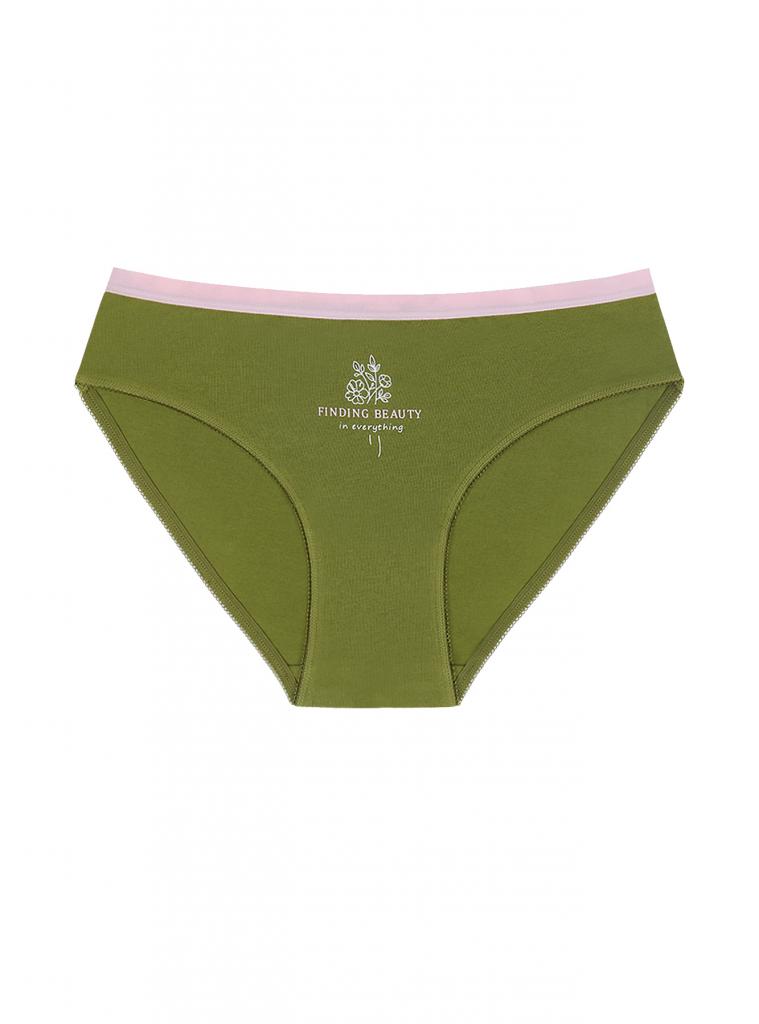 Трусы слипы женские изготовлены из натурального хлопка. Мягкая эластичная резинка на талии фиксирует трусы, не оставляя следов на коже. Зелёный цвет добавляет свежести образу, а оригинальный принт спереди привносит нотку индивидуальности. Средняя посадка делает трусы слипы универсальными для ежедневной носки.
