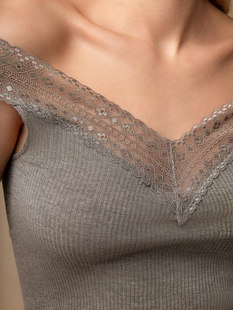 Женская майка в рубчик из мягкого хлопка и легкого модала приятная на ощупь. Дизайн с оригинальной текстурой в рубчик придает изделию современный вид и визуально подчеркивает линии фигуры. Кружевные рукава добавляют нотку романтики и утонченности, делая майку универсальным элементом для любого наряда. Майка подходит как для повседневной носки, так и для торжественных событий.