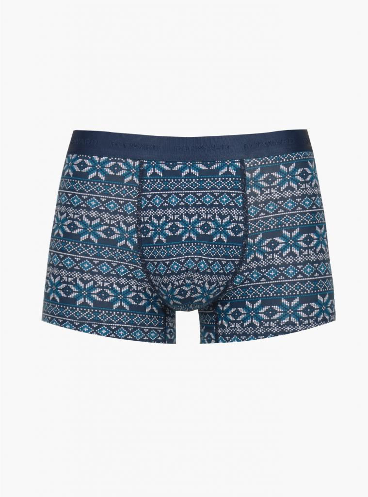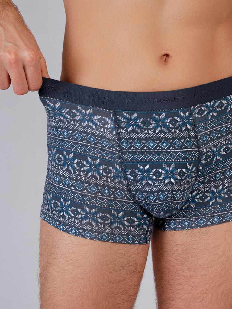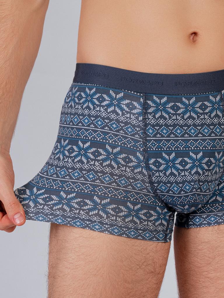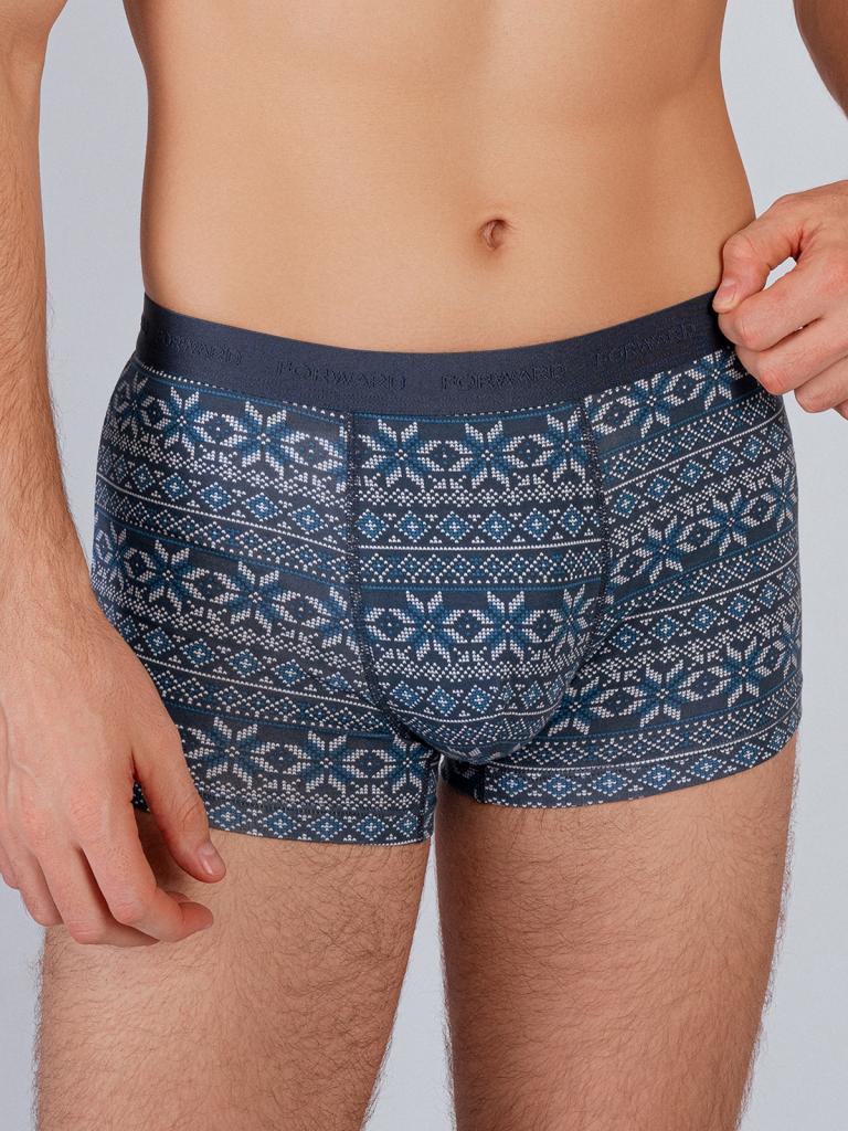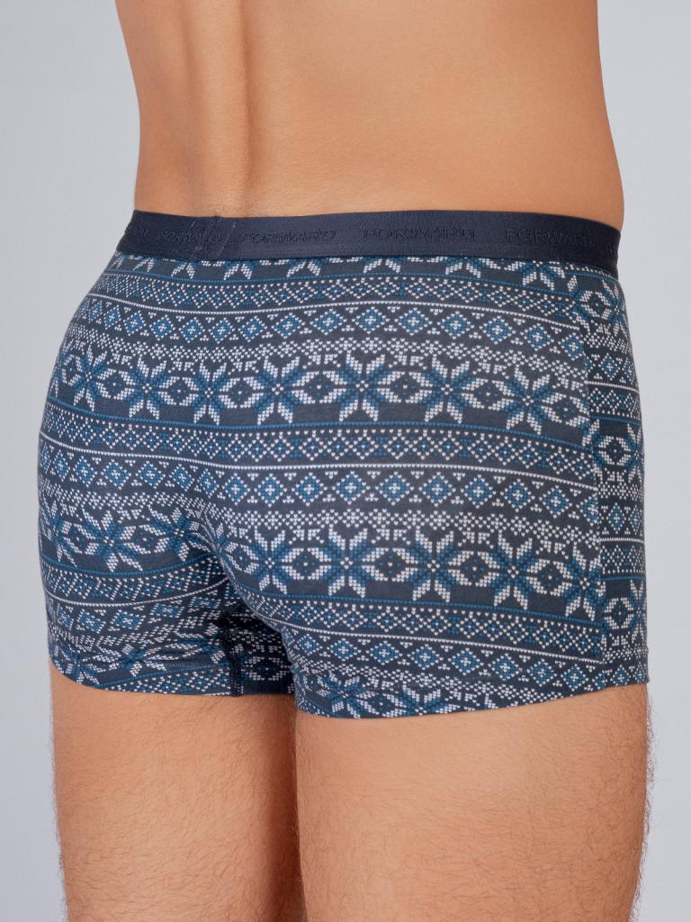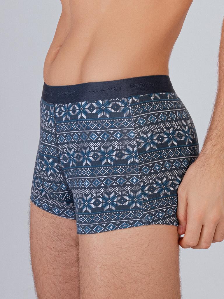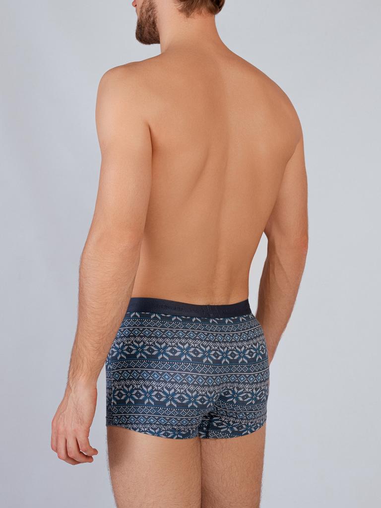 Мужские трусы боксеры изготовлены из хлопкового материала. Средняя посадка обеспечивает баланс между свободой движений и комфортной фиксацией, а мягкая эластичная резинка на талии не сдавливает и не натирает кожу. На мужские трусы нанесен принт с изображением узоров.