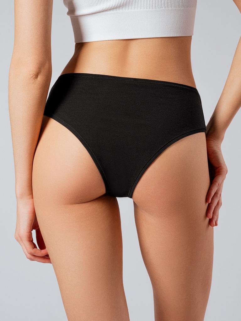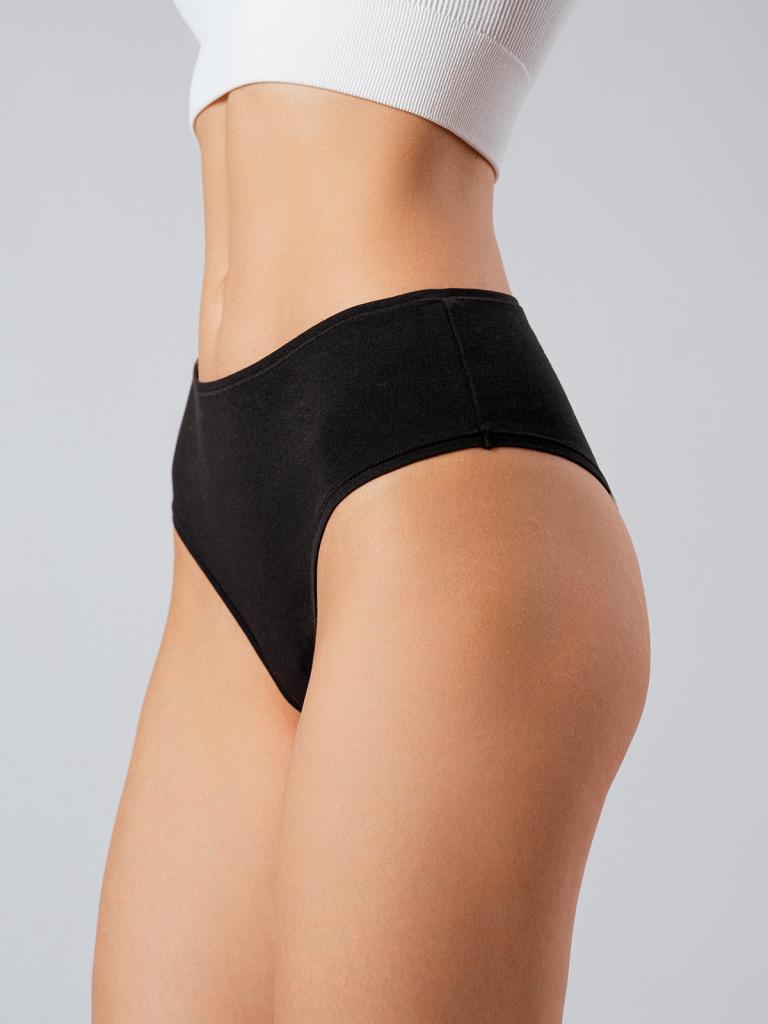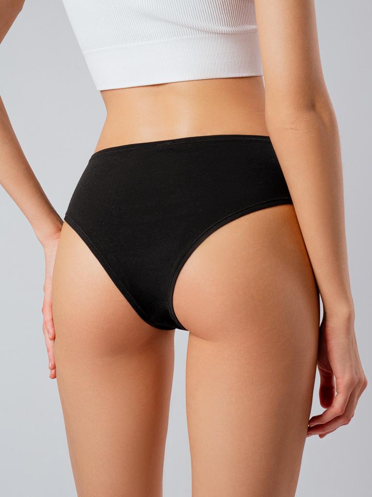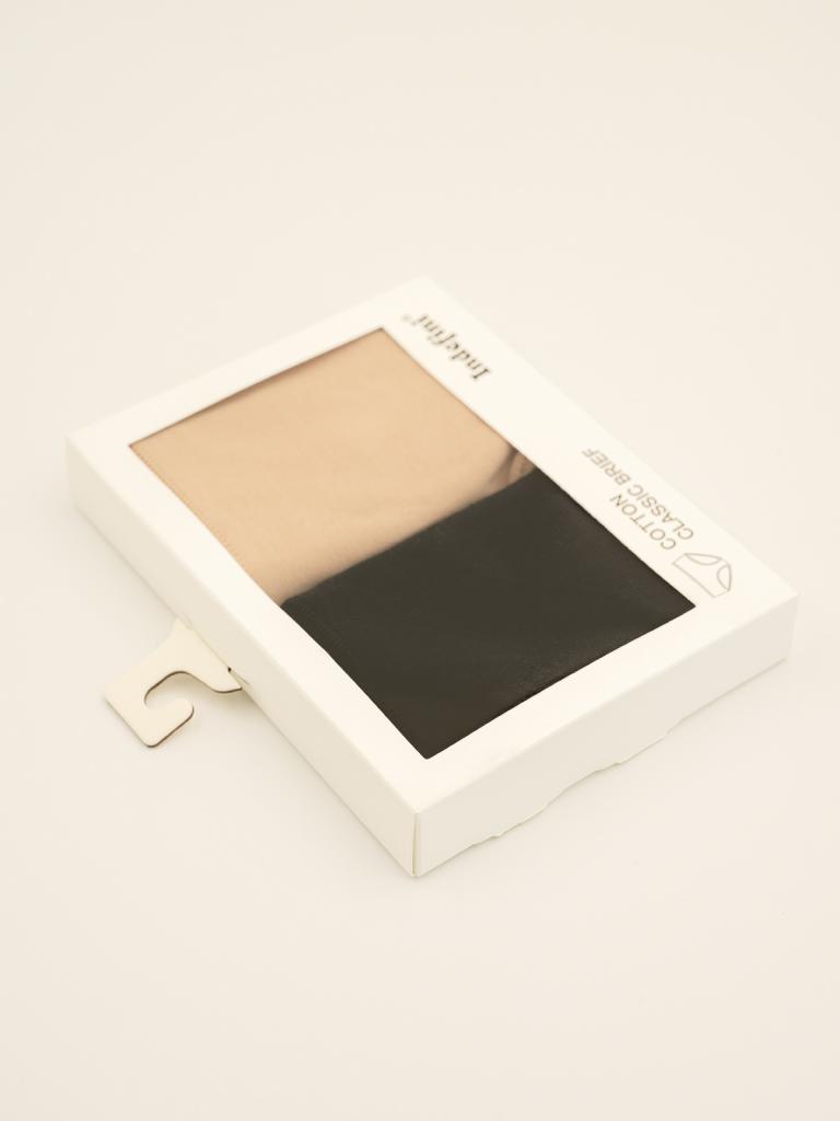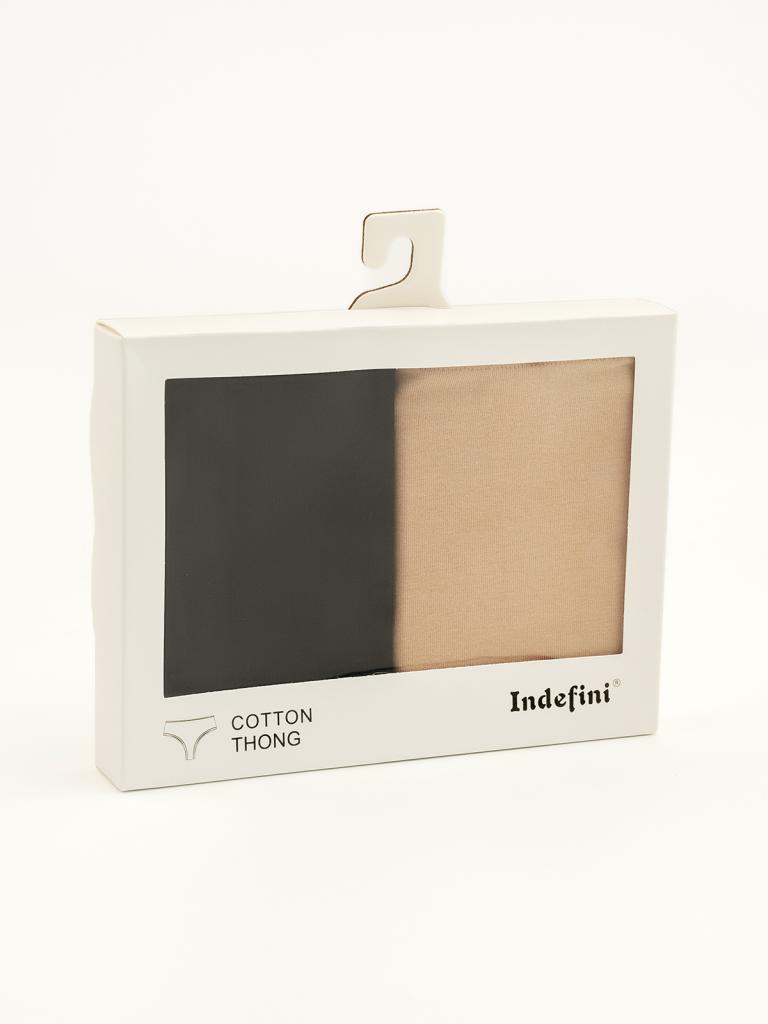 Набор включает в себя двое женских трусов танга, изготовленных из хлопка. Одни трусы выполнены в классическом черном цвете, вторые трусы – в бежевом. Они имеют среднюю посадку и мягкую эластичную резинку на талии. Внутренняя сторона обоих трусов дополнена хлопковой ластовицей.