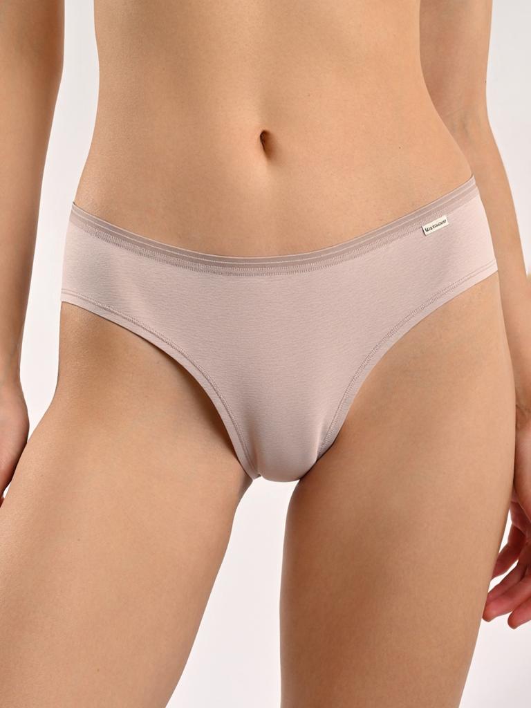 Базовые женские трусы из хлопкового трикотажа. Эластичный пояс аккуратно фиксируется и не ощущается на коже. Выполнены в кофейном оттенке, сидят ровно, практически не ощущаются на коже и не выделяются под одеждой. В трусах-слипах комфортно в течение всего дня.