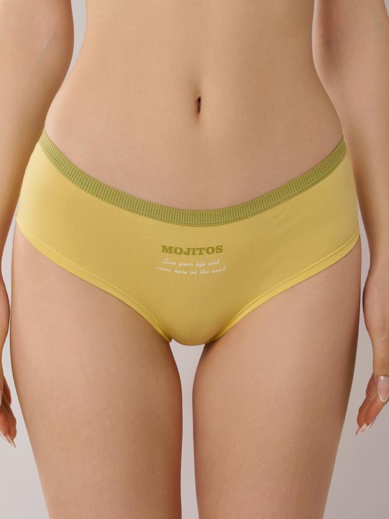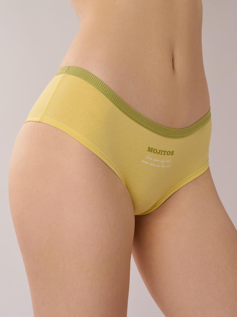 На трусы нанесён принт с надписью «MOJITOS» и слоганом «Live your life and come here on the road».