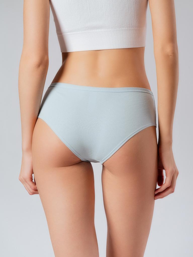 Трусы средней посадки держатся на талии мягкой резинкой в тон основной ткани..