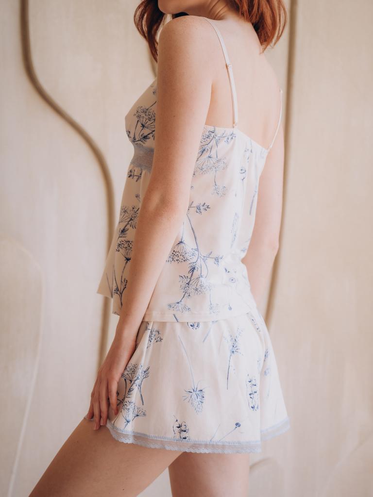 Стильная домашняя одежда от торговой марки Индефини в виде майка с шортами, самая популярная, можно носить в любое время года. Такой вид одежды подарит комфорт и уют дома.