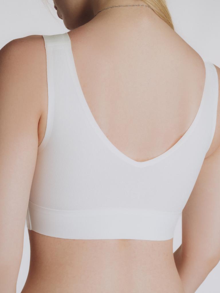 Не имеет жестких деталей, поэтому отличается повышенным комфортом, при этом надежно фиксирует грудь.