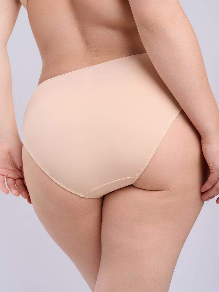 Трусы-слипы средней посадки, также из той же ткани, с кружевными вставками по бокам и декоративным элементом спереди. По поясу — мягкая эластичная резинка для идеальной посадки. Идеально подходит для повседневного ношения