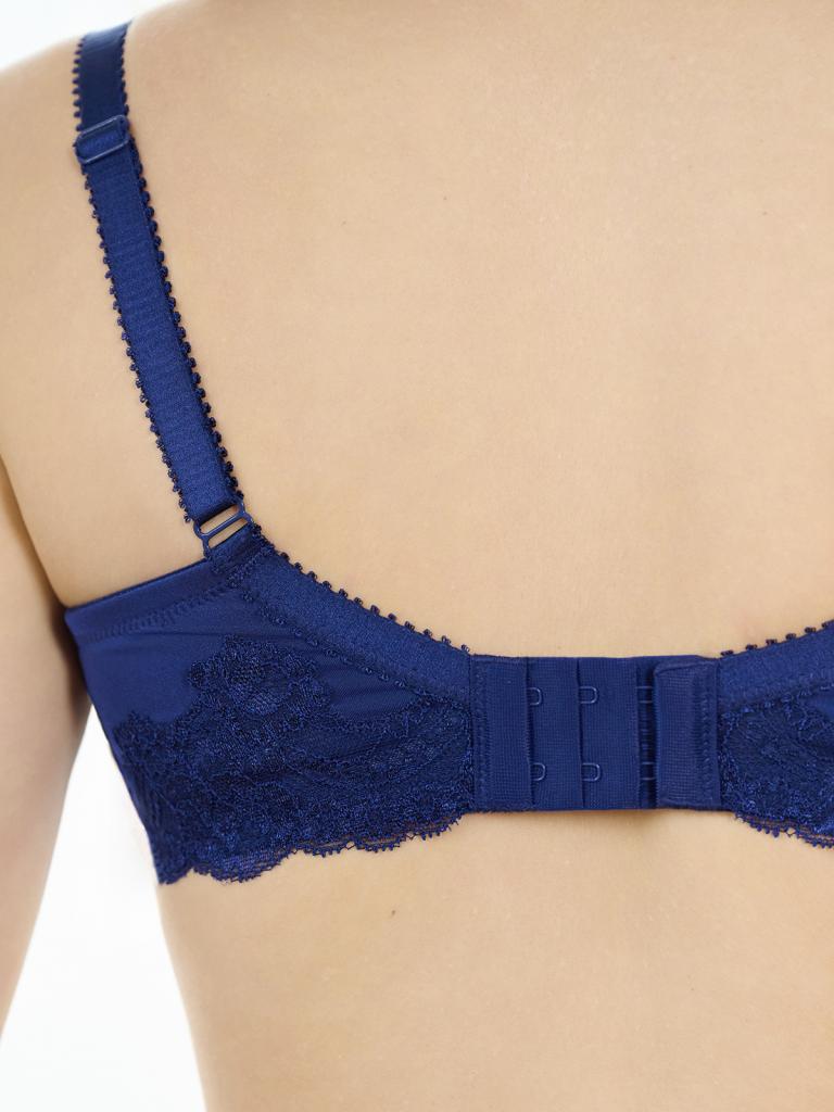 Элегантный синий бюстгальтер с косточками подходит для разных ситуаций: повседневных дел, романтических встреч и особых событий. Модель изготовлена из качественных материалов: полиамида с добавлением эластана, за счет чего изделие хорошо держит форму и сохраняет цвет после множества стирок.