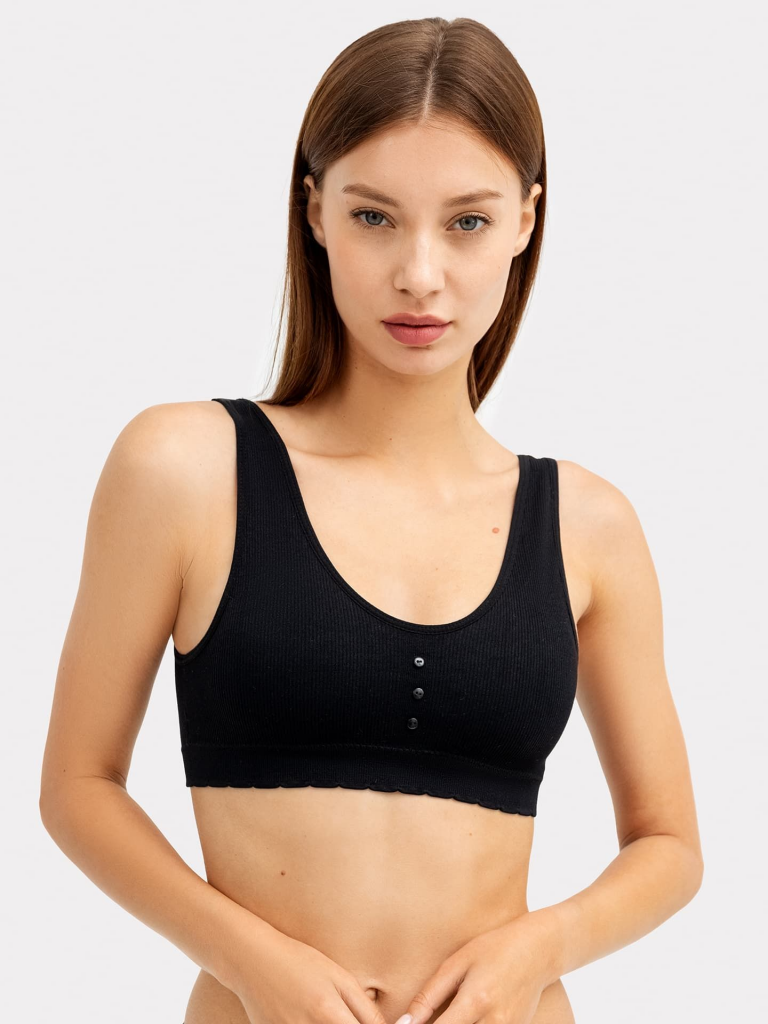 Стильное бюстье женское на широких лямках и с иммитацией застежки на три пуговицы на передней детали — это изысканная модель нижнего белья, которое призвано подчеркнуть женскую красоту и создать элегантный образ. Выполнено из высококачественного материала. Комфортное и удобное — лучший вариант на каждый день. Дополнить можно трусиками в тон и собрать бельевой set. Линейка имеет широкий размерный и цветовой ряд. Изделие красиво подчеркнет зону декольте, понравится девушкам, которые не любят стандартные бра на косточках. Рекомендуем!