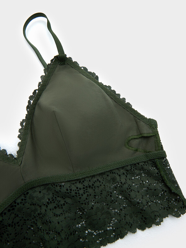 Анатомическая конструкция бюстье обеспечивает деликатную поддержку груди без жестких косточек или эффекта пуш-ап, делая его идеальным для повседневной носки. Съемные вкладыши позволяют адаптировать модель под ваши потребности, сохраняя естественность силуэта. Нежный зеленый цвет подчеркивает свежесть образа и легко сочетается с любым нижним бельем.