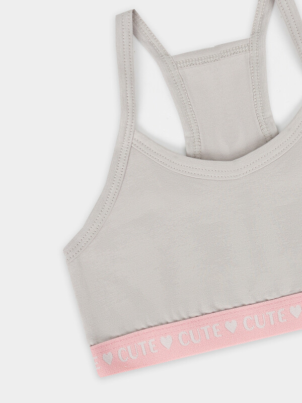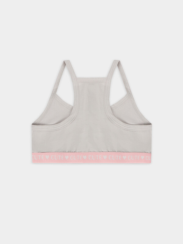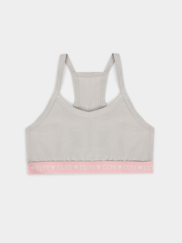 Серое бюстье для девочек — это нежный и практичный предмет нижнего белья, созданный для комфорта в течение всего дня. Модель выполнена из мягкого трикотажа, который обеспечивает идеальное прилегание и не раздражает нежную кожу. Округлая горловина и фигурная спинка, как в спортивном топе, подчеркивают аккуратность силуэта, обеспечивая поддержку и свободу движений.