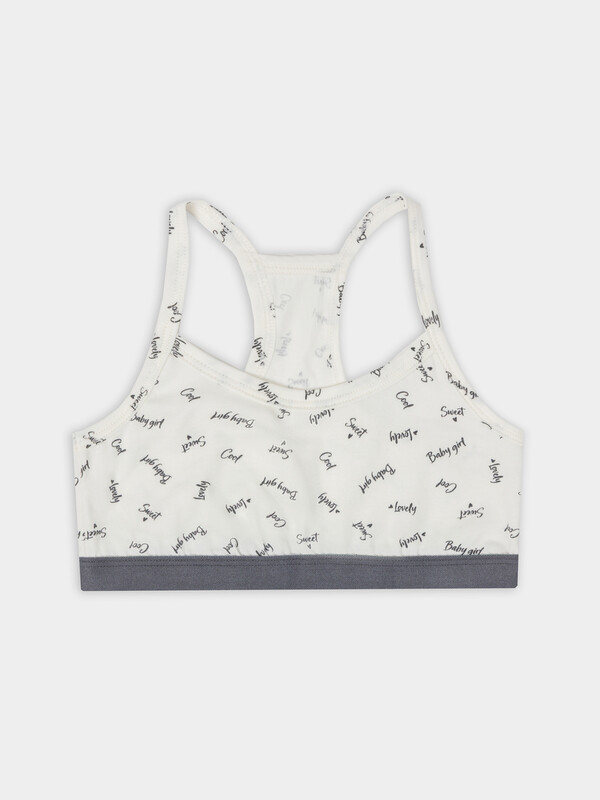 Топ для девочек серый с надписями — это стильный и удобный вариант для повседневной носки. Модель выполнена из мягкой трикотажной кулирки, которая нежно прилегает к коже, обеспечивая комфорт и свободу движений. Округлая горловина и фигурная спинка, напоминающая спортивный топ, создают аккуратную посадку и поддерживают форму.