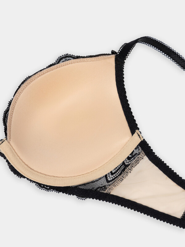 Соблазнительный бюстгальтер push-up с кружевом создан для подчеркивания женственных форм. Формованные чашки бюстгальтера из эластичного кружева обеспечивают идеальную поддержку и придают груди соблазнительный объем, а воздушная сетка по бокам добавляет легкость и комфорт.