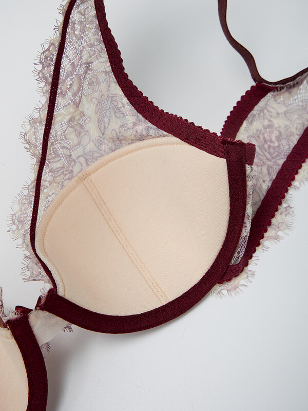 Дополните свою коллекцию нижнего белья эффектным бюстгальтером из нежного кружева. Невероятно легкая и комфортная модель для девушек, которые любят стиль и элегантность в деталях. Этот бюстгальтер отлично поддерживает грудь, красиво формируя линию декольте. Удобные бретели и двойная застежка на спинке помогут отрегулировать его так, как нужно именно вам. Дополнить этот бюстгальтер можно стильным низом из этой же коллекции!