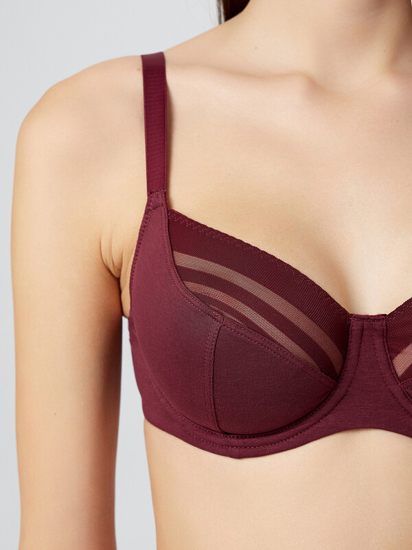 Мягкие чашки на косточках с двойным членением аккуратно поддерживают, не создавая давления, а кружево по верхнему краю добавляет элегантности. Широкие бретели и надежная спинка снимают нагрузку с плеч, обеспечивая комфорт в течение всего дня. Этот бюстгальтер макси подойдет для повседневной носки — он невидим под одеждой и дарит уверенность. Если вы ищете, где купить бюстгальтер макси, который сочетает натуральные материалы, продуманную конструкцию и нежный дизайн, эта модель станет отличным выбором.