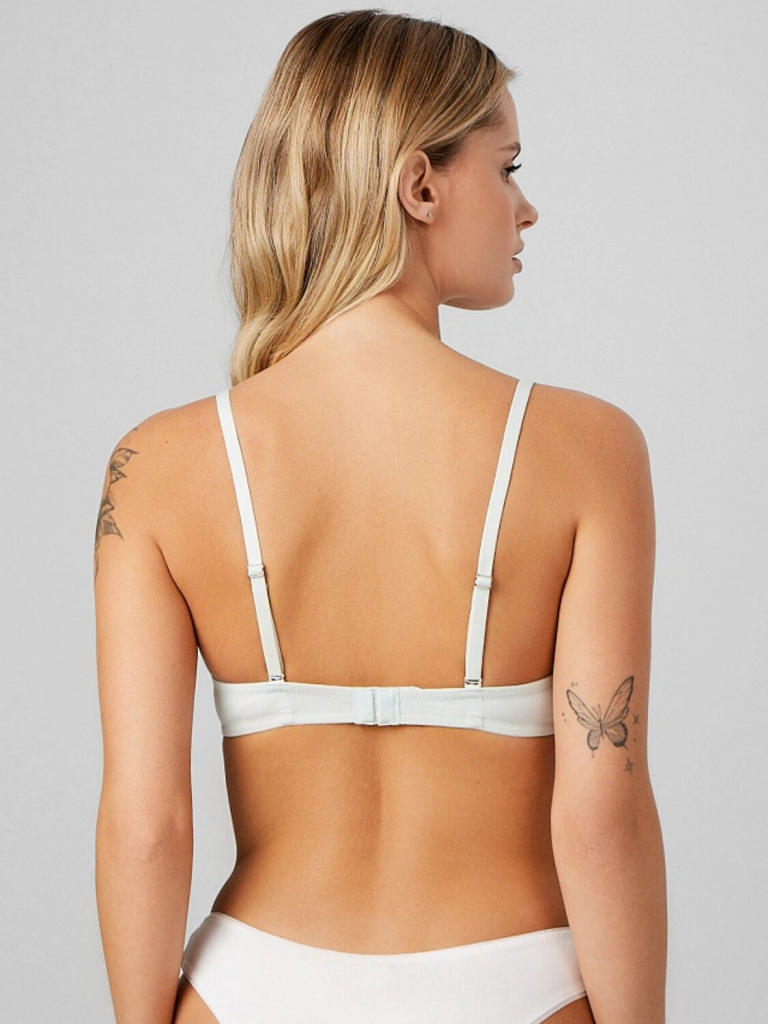 Этот белый бюстгальтер отличается продуманными деталями: эластичная тесьма по верхнему и нижнему краю обеспечивает аккуратную посадку без врезания, а регулируемые бретели позволяют настроить длину под вашу фигуру. Надежная металлическая застежка на спине гарантирует удобство использования и долговечность. Вы можете купить женский бюстгальтер этой модели для повседневной носки — он остается незаметным даже под самым тонким топом.