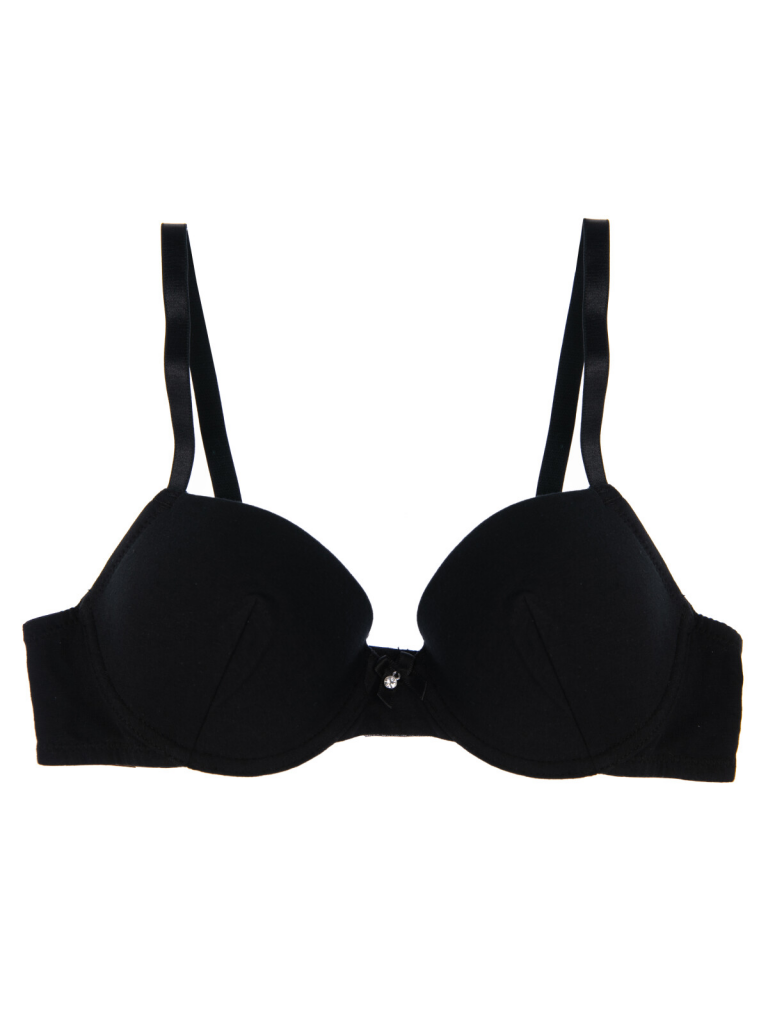 Бюстгальтер с формованными чашками с косточкой. Застежка на 2 крючка, благодаря 3 рядам креплений регулируется по объему. Лямки можно отрегулировать по длине и при необходимости соединить на спине между собой.