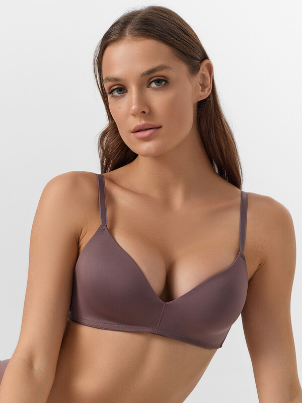 Формованные чашки без косточек и push-up эффекта мягко поддерживают грудь, создавая естественную форму без стеснения движений. Удобные широкие бретели не врезаются в плечи, а эластичная спинка обеспечивает идеальную посадку.