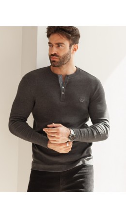 • Хенли. Это тонкая хлопковая футболка без воротника, но с вырезом, дополненным пуговицами. Обычно их не застёгивают, как и в поло. Они украшают образ.
