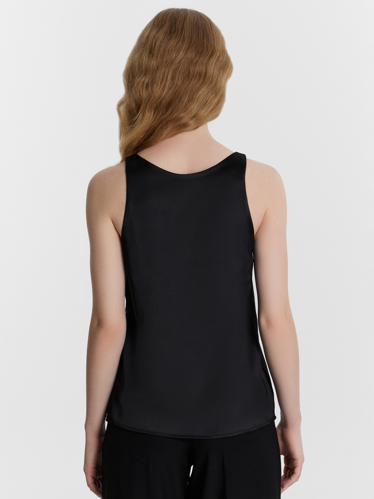 Элегантная блуза на узких бретелях – идеальный выбор для создания стильного и изысканного образа. Прямой, свободный силуэт и V-образная горловина придают модели утончённость и шарм. Перед и спинка на подкладке из основного материала обеспечивают комфорт и дополнительную плотность, а нижние срезы аккуратно обработаны швом вподгибку, что придаёт изделию завершённый вид. Блуза выполнена из прочного и приятного к телу струящегося материала, который красиво подчеркивает изящные линии фигуры. Этот материал не только отлично смотрится, но и дарит ощущение нежности и лёгкости при каждом движении. Такая блуза станет отличным дополнением вашего гардероба, подходящим как для повседневных образов, так и для особых случаев.