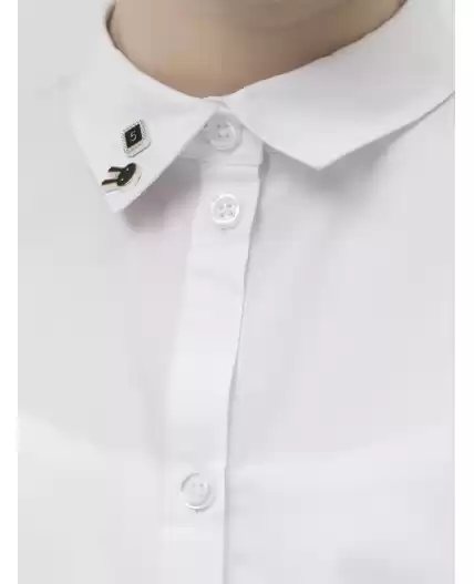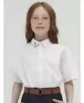 Школьная рубашка для девочки оверсайз. Ткань отлично держит форму, легко гладится и мало мнётся. Подойдёт для любой фигуры. Свободный прямой силуэт позволит быть собой и активничать не только на уроках, но и на переменах. Крутая деталь: съемные графичные значки пины! Их можно крепить не только на воротник, но и на джинсы, жакет или сумку. А еще ими интересно обменяться с подружкой. Минимализм и современный крой позволяют легко комбинировать её с брюками, платьями и юбками. Можно носить навыпуск или заправлять.