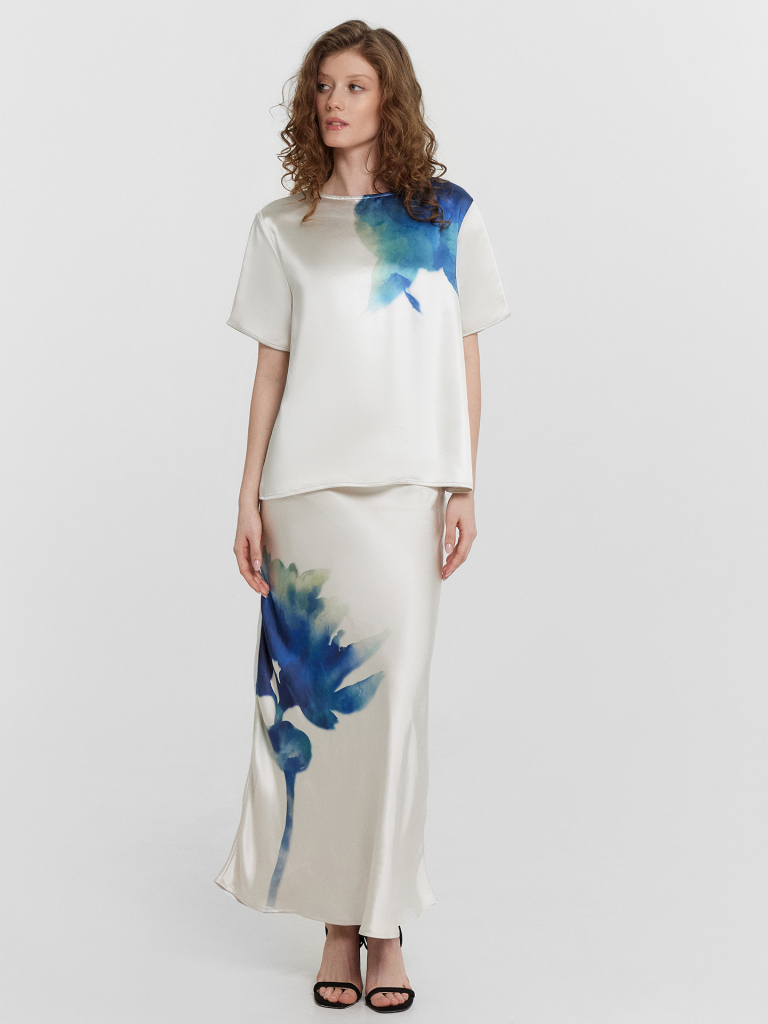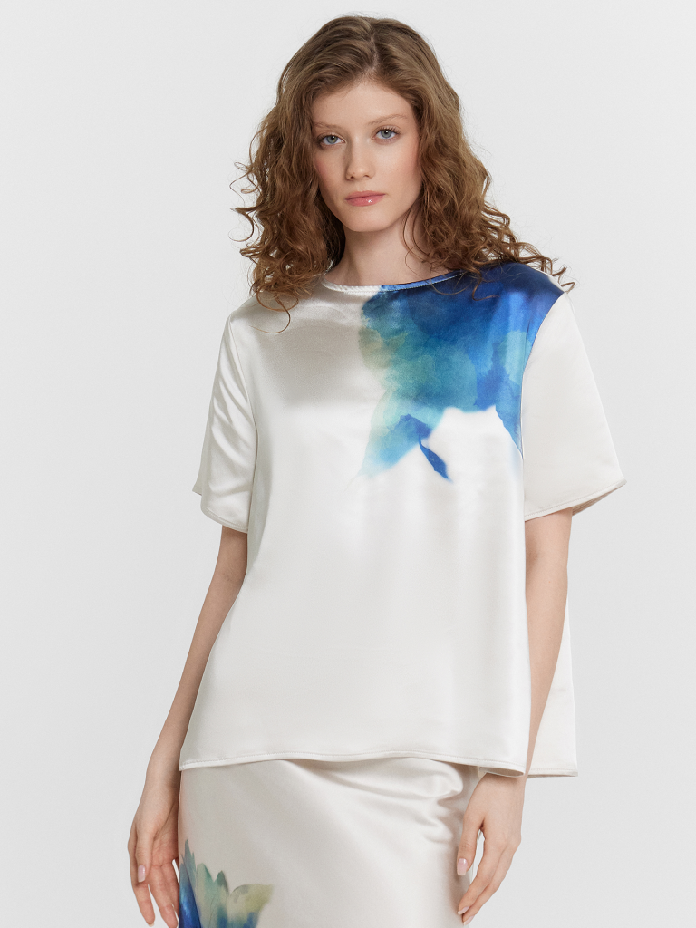 Блузка сублимация цветок на молочном