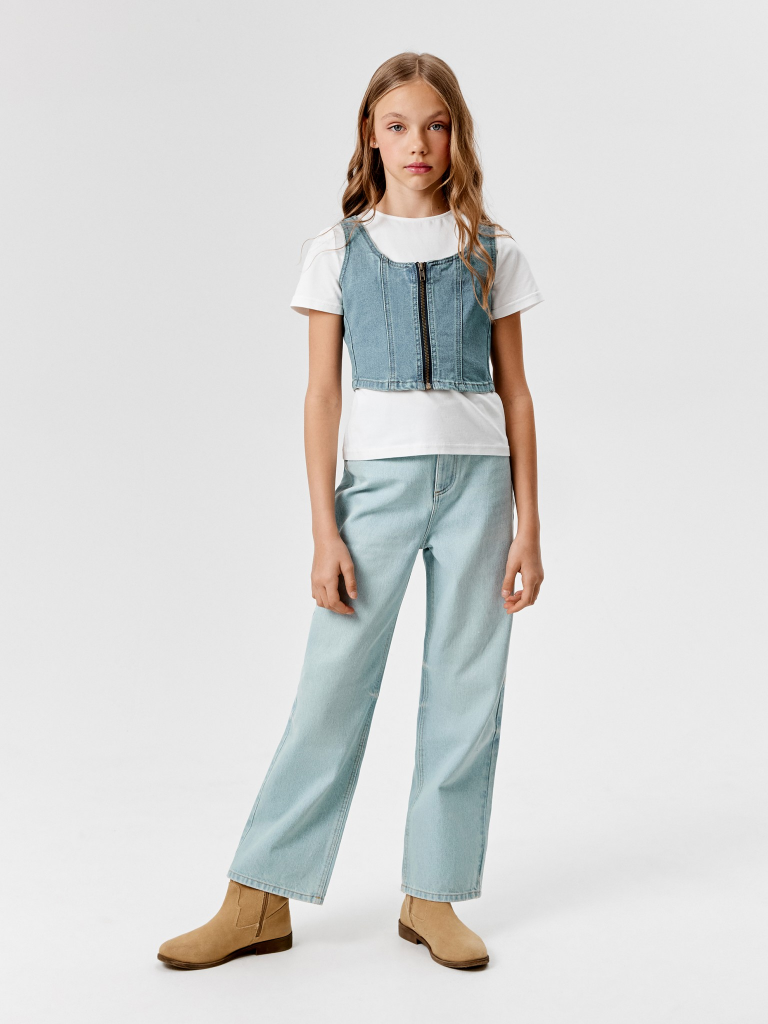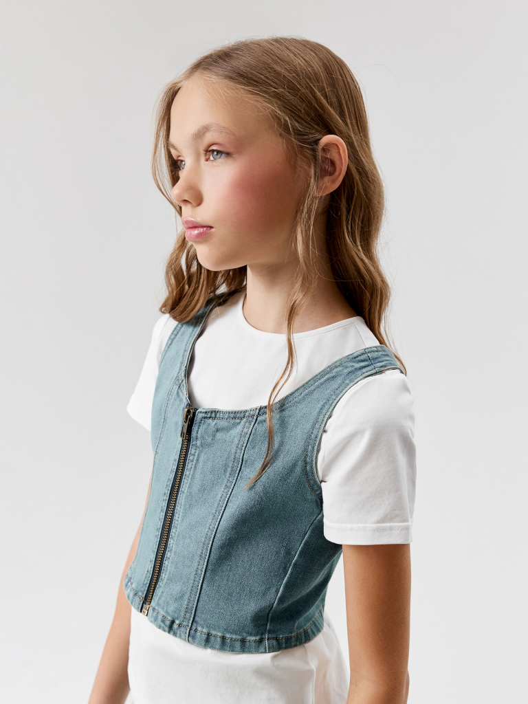 Блузка-топ джинсовая детская для девочек Sunfyre синий