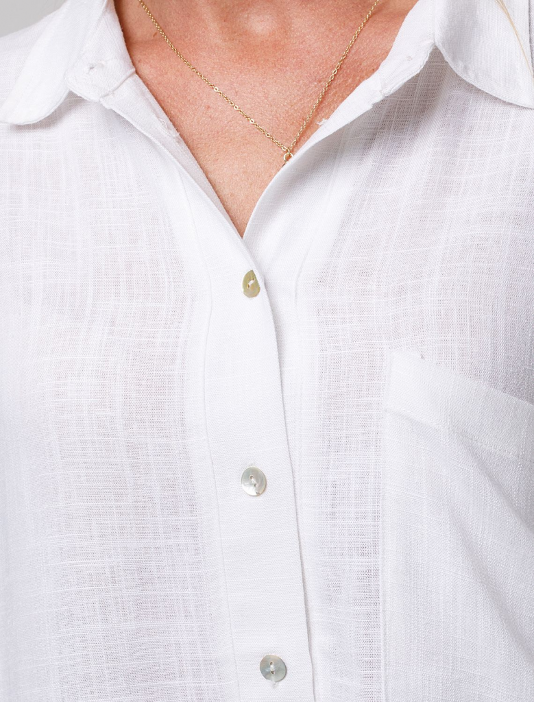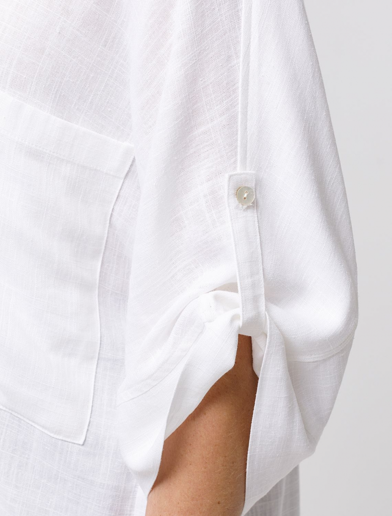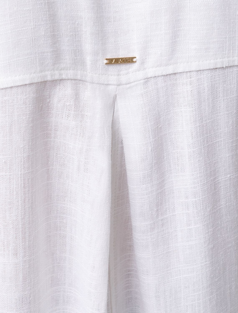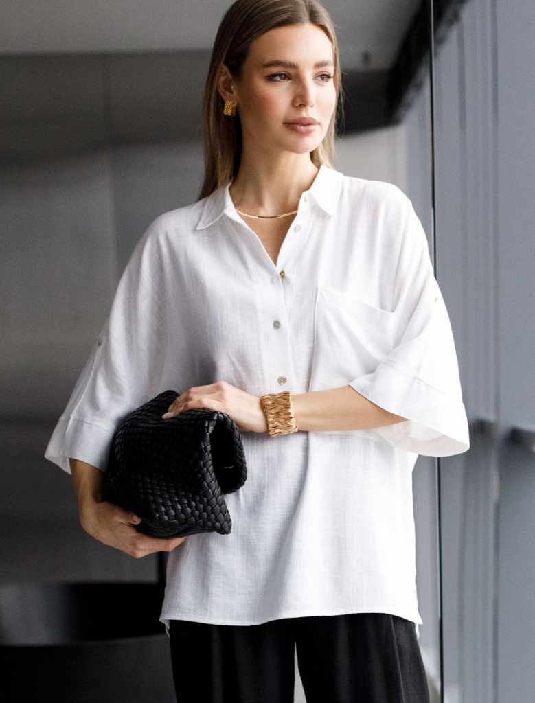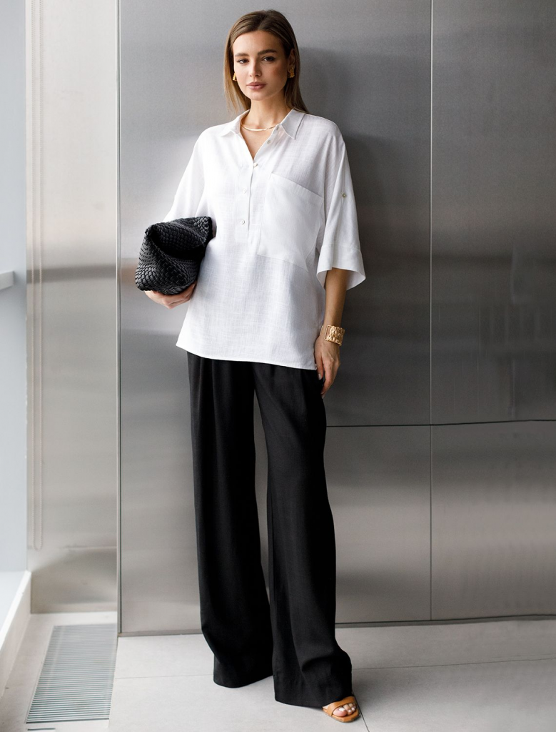 Блузка выполнена изо льна с вискозой. Модель с цельнокроеным рукавом с застежкой на пату дополнена сольным карманом и застежкой на пуговицы из натурального перламутра. Сочетается в костюме с брюками D24.222 и шортами D28.052. Ткань изящно струится, почти не мнется и сохраняет форму в течении долгого времени, обладает высокой воздухопроницаемостью, обеспечивая комфорт даже в самое жаркое время года.