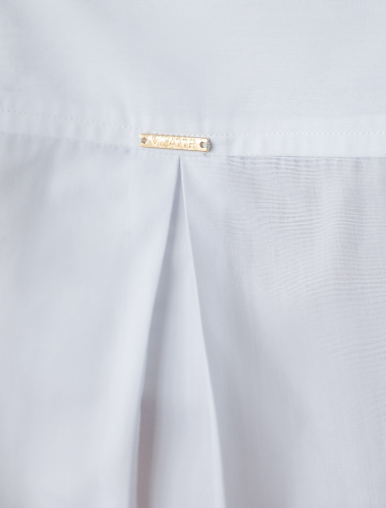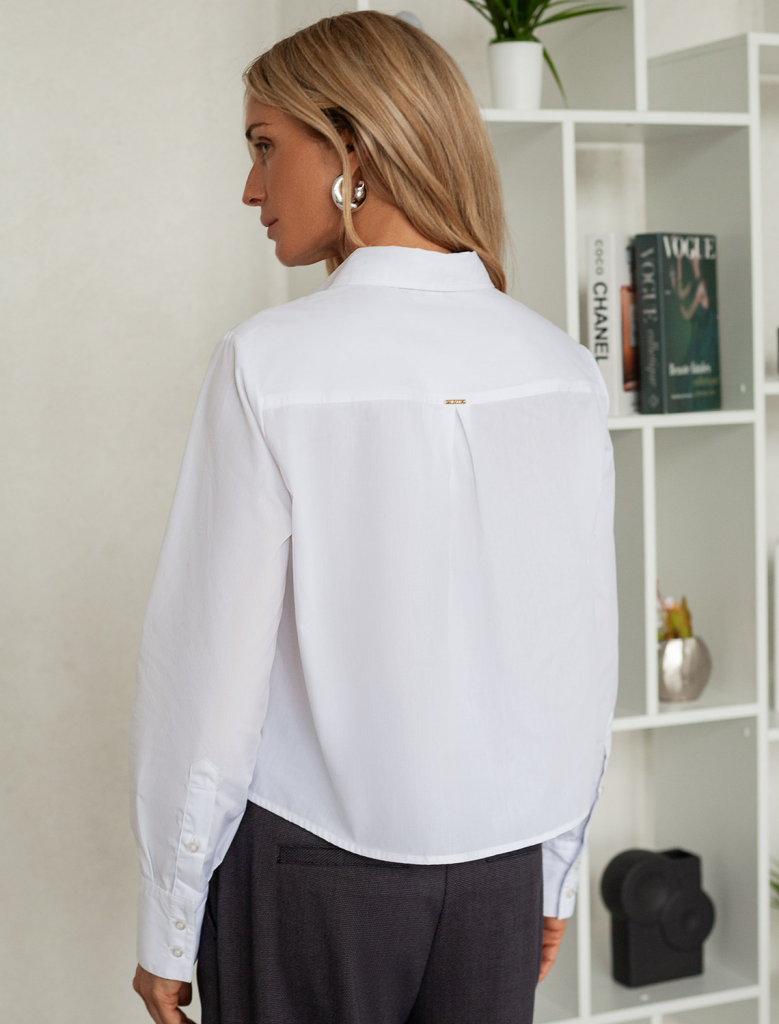 Укороченная блузка выполнена из формоустойчивого хлопка. Лаконичная модель дополнена карманом. Изделие хорошо держит форму, что позволяет создать стильные строгие образы в офис. Чтобы подчеркнуть линию талии не теряя пропорций, сочетайте в комплекте с прямыми и широкими брюками. В более расслабленном образе – с джинсами трубами.