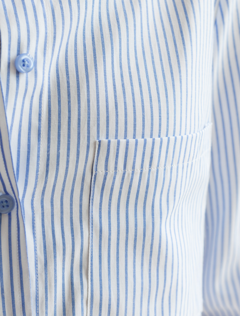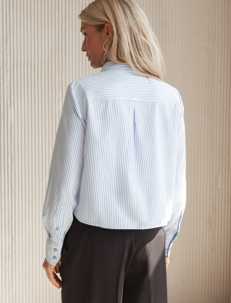 Укороченная блузка выполнена из формоустойчивого хлопка. Лаконичная модель дополнена карманом. Изделие хорошо держит форму, что позволяет создать стильные строгие образы в офис. Чтобы подчеркнуть линию талии не теряя пропорций, сочетайте в комплекте с прямыми и широкими брюками. В более расслабленном образе – с джинсами трубами.