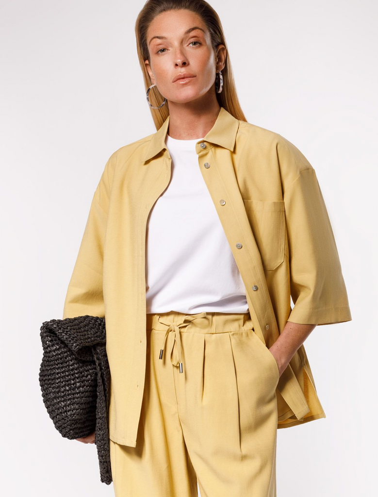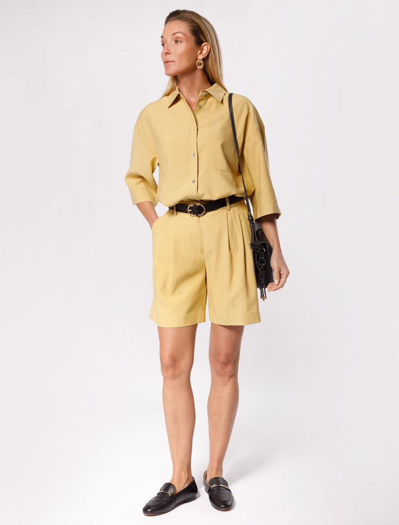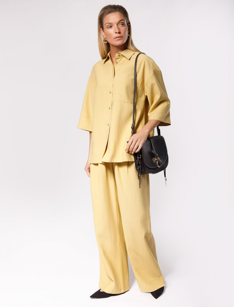Блузка свободного кроя выполнена из плотного лиоцелла. Застежка на пуговицы из натурального перламутра. Добавление синтетических волокон в составе изделия предотвращает сминаемость. Подходит для любой фигуры. Для создания расслабленного образа, сочетайте в костюме с брюками D24.214, D24.218, шортами D28.054 и юбкой D26.181