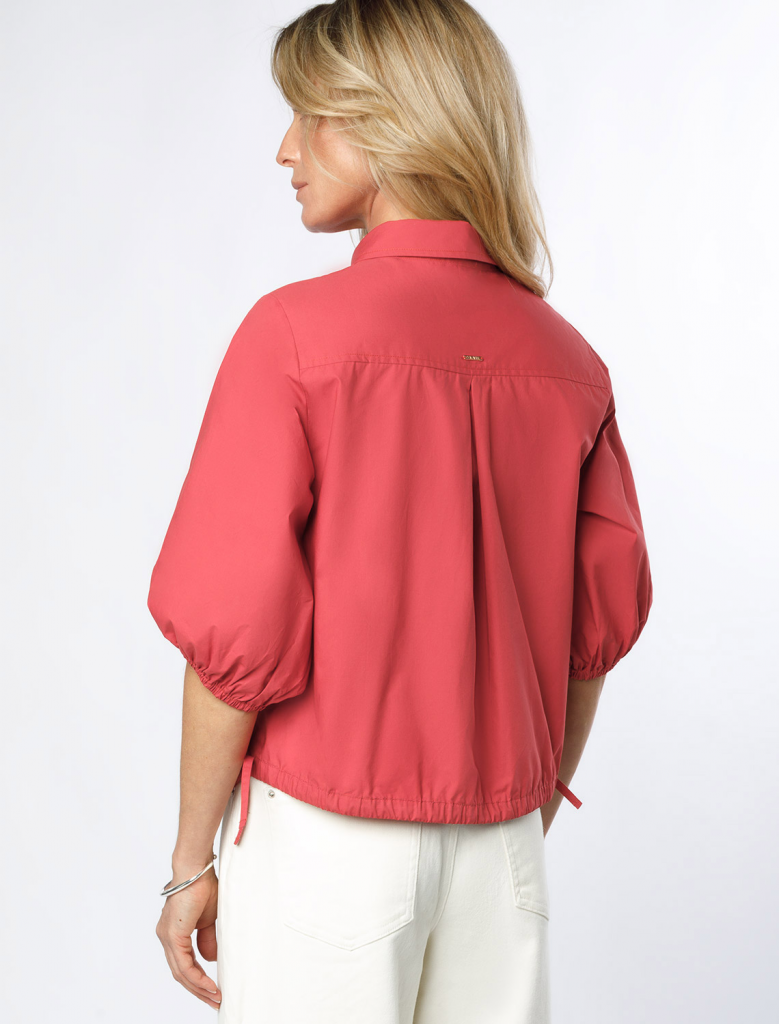 Укороченная блузка с пышными рукавами-фонариками выполнена из легкого хлопкового поплина. Супатная застежка на пуговицы из натурального перламутра. Внизу кулиса с лентами из основного полотна. В изделии будет комфортно, даже в самое жаркое время года. Подходит для любой фигуры. Сочетается в костюме с кюлотами D24.233 и юбкой D26.179