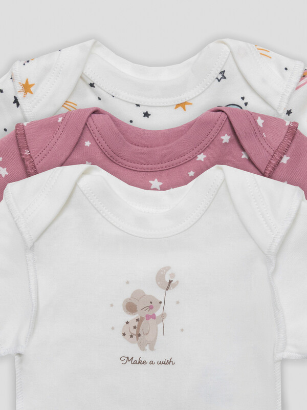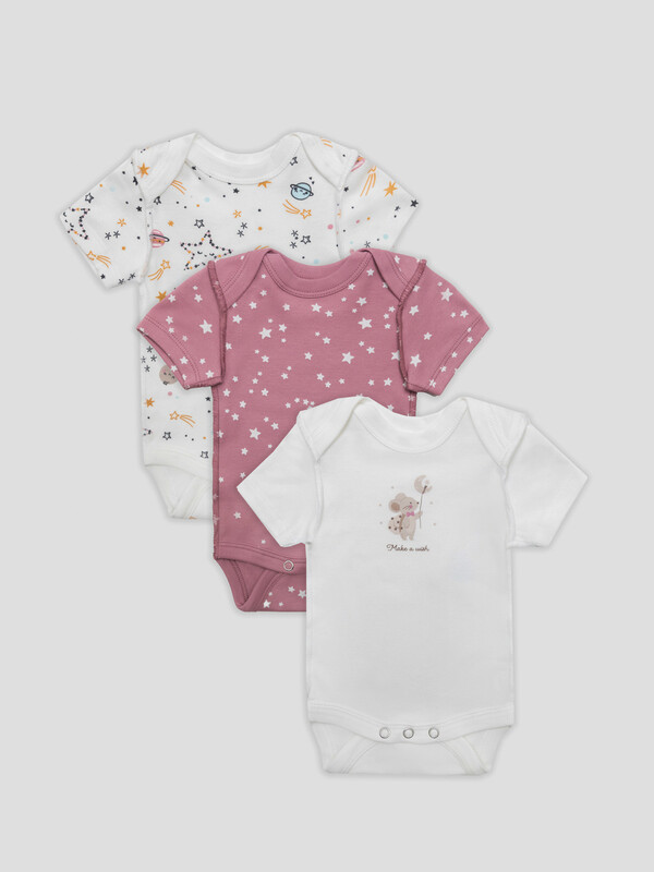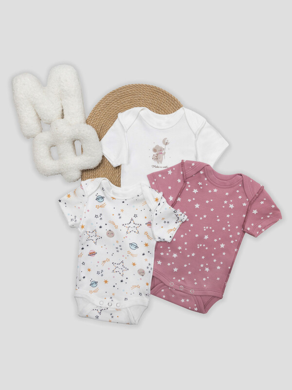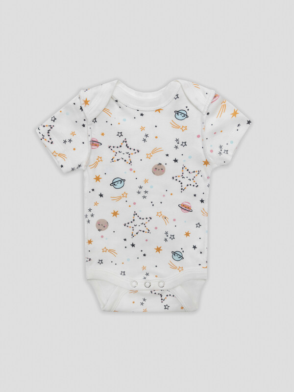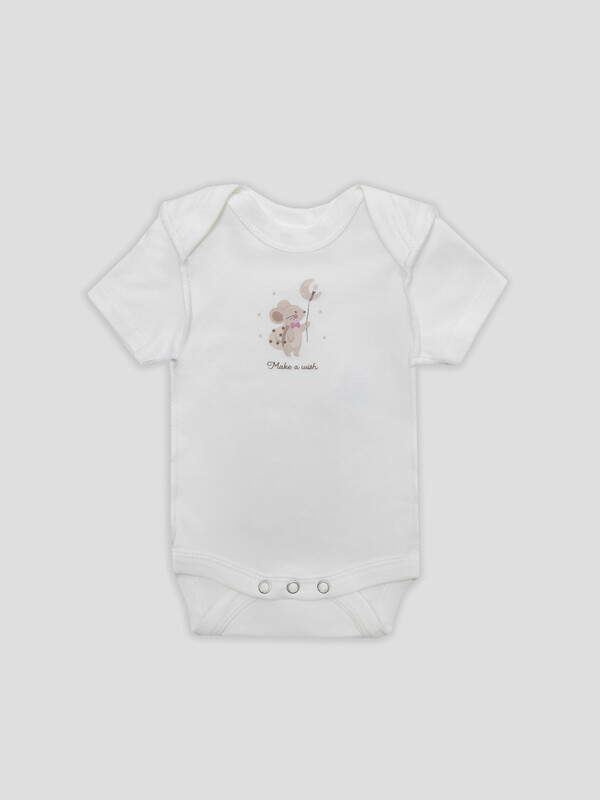 Детское боди выполнено из мягкого хлопкового интерлока, который отличается особой нежностью и воздухопроницаемостью — идеальный выбор для чувствительной кожи малыша. Швы расположены на лицевой стороне изделия, что снижает риск натирания и делает ношение максимально комфортным. Круглая горловина аккуратно окантована бейкой из основного материала, придавая изделию завершенный вид и обеспечивая удобство при надевании. Короткие рукава делают боди подходящим для теплой погоды или для использования в качестве нижнего слоя. Застежка на кнопки позволяет легко переодевать ребенка, не причиняя ему дискомфорта. Это практичная и уютная вещь, созданная с вниманием к деталям и потребностям малышей.
