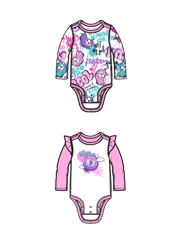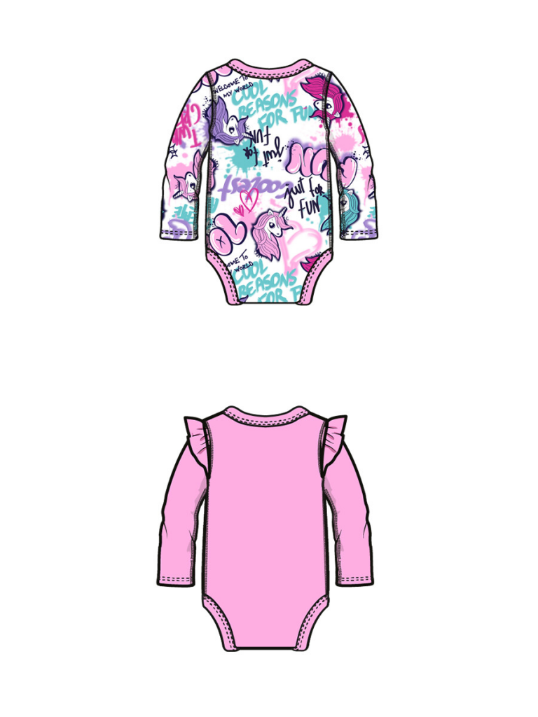 Набор боди для девочки. Боди с длинным рукавом из натурального хлопкового двойного трикотажа. 2 шт. в комплекте. 100% хлопок. Кнопки внизу - 2 ряда, боди растет вместе с малышом.