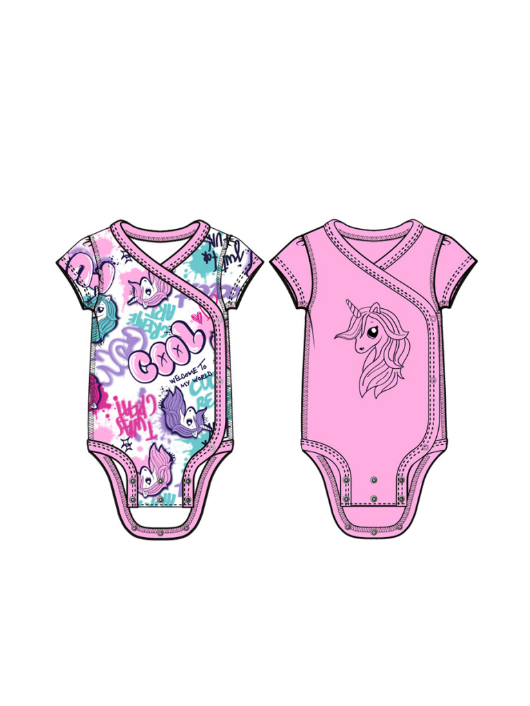Набор боди для девочки. Боди с коротким рукавом из натурального хлопкового двойного трикотажа. 2 шт. в комплекте. 100% хлопок. Кнопки внизу - 2 ряда, боди растет вместе с малышом.