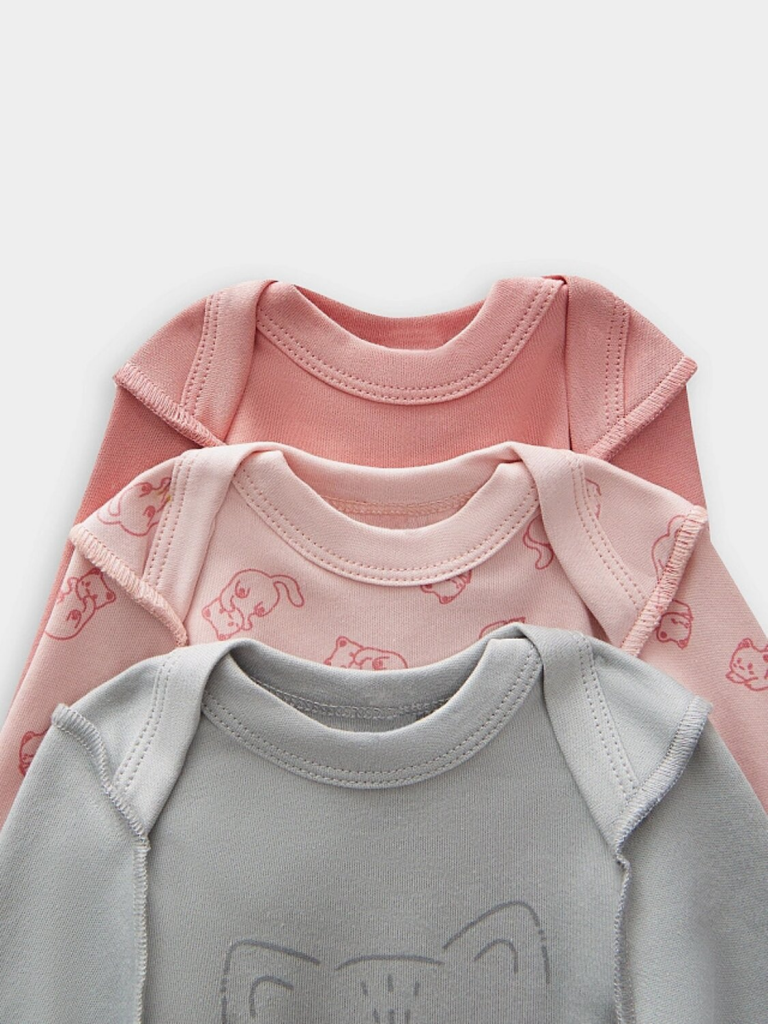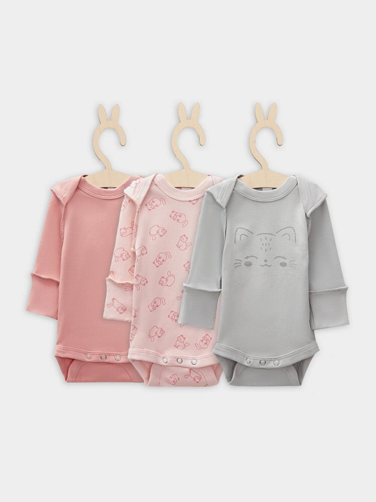 Набор детских боди из мягкого интерлока создан для максимального комфорта малышей. В комплект входят три модели, выполненные из плотного, но нежного материала, который бережно заботится о детской коже, сохраняя тепло и обеспечивая естественный воздухообмен.