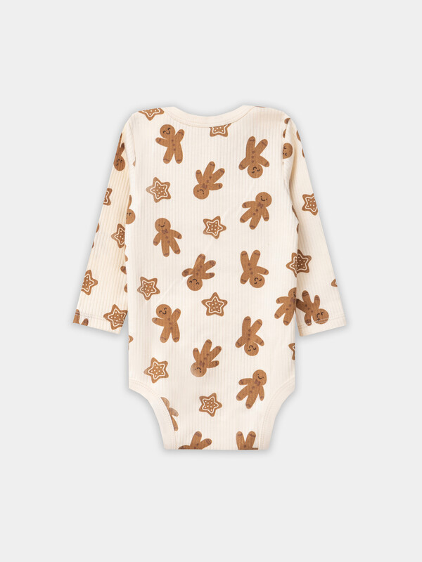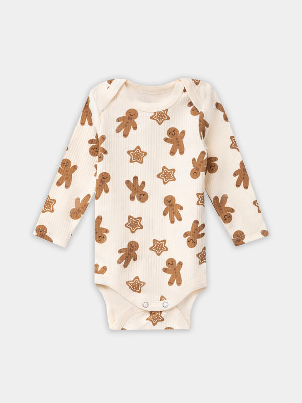 Специальная кокетка на спинке и удлиненная вставка между ножек упрощают смену подгузника. Круглая горловина и все края изделия обработаны эластичной мягкой резинкой, которая нежно облегает тело, не сдавливая и не натирая. Длинные рукава с аккуратно подогнутыми краями не сползают и сохраняют тепло.