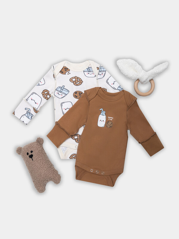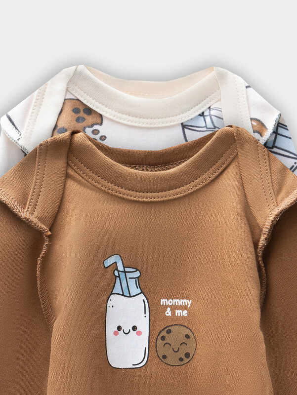 Удобная застежка-кнопки по всей длине позволяет легко менять подгузник, не причиняя дискомнова. Длинные рукава со встроенными царапками защитят ребенка от случайных движений рук. Круглая горловина аккуратно обработана и удобна при надевании. Натуральный хлопок обеспечивает воздухообмен и безопасность для кожи. Этот набор станет практичным решением для ежедневного использования дома, на прогулках и в поездках, даря малышу комфорт и свободу движений.