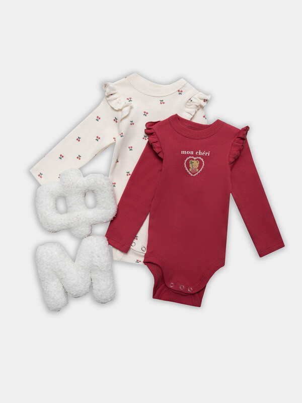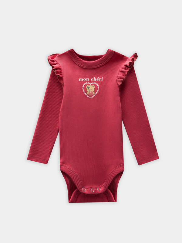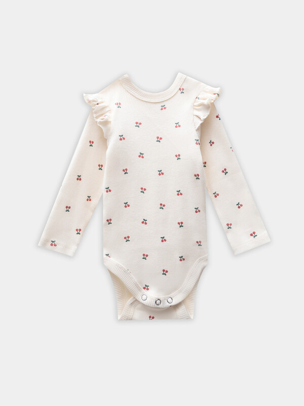 Цельнокроеная спинка с ластовицей обеспечивает удобство при смене подгузника. Круглая горловина и все внутренние швы аккуратно обработаны для максимального комфорта. Длинные рукава украшены милыми рюшами на плечах, а застежка на кнопках по левому плечу и в нижней части изделия упрощает переодевание. Натуральный хлопок обеспечивает воздухообмен и безопасность для нежной кожи ребенка. Это боди станет любимой вещью в гардеробе вашего малыша для дома, прогулок и праздников.