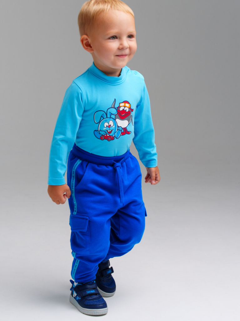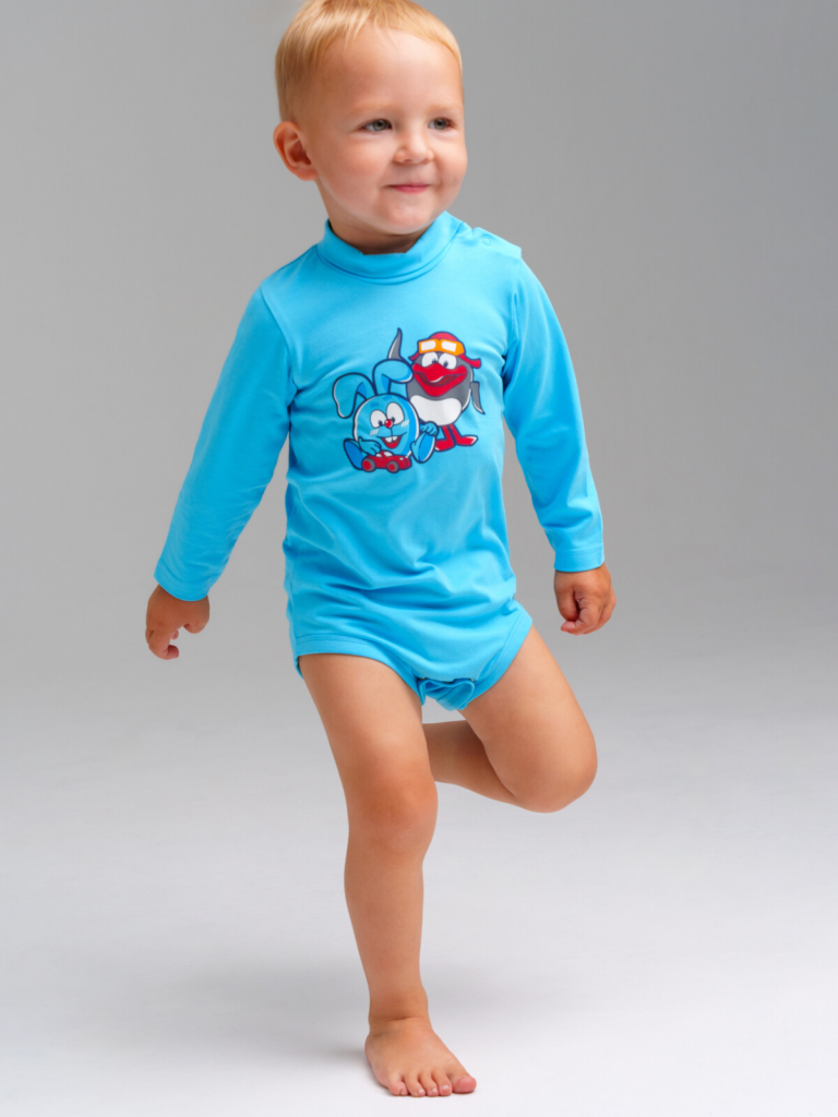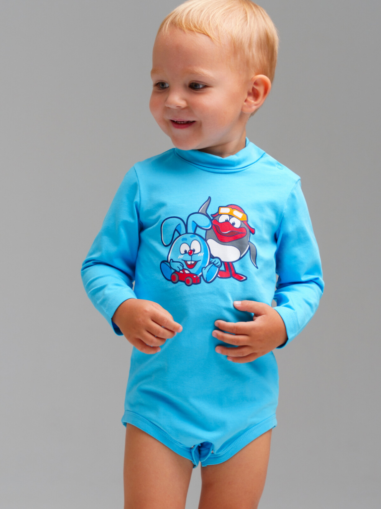 Детское боди для мальчика. Боди с длинным рукавом из натурального хлопкового двойного трикотажа. Высокое содержание хлопка. Кнопки внизу - 2 ряда, боди растет вместе с малышом. Модель из капсульной коллекции СМЕШАРИКИ, соберите полный образ в едином стиле!