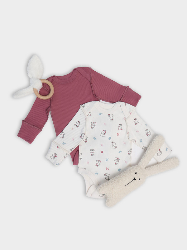 Боди зайчики на зв.белом +дымчатая роза