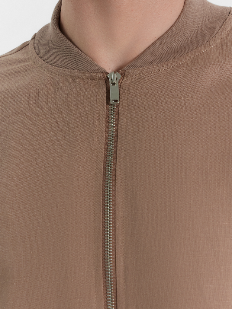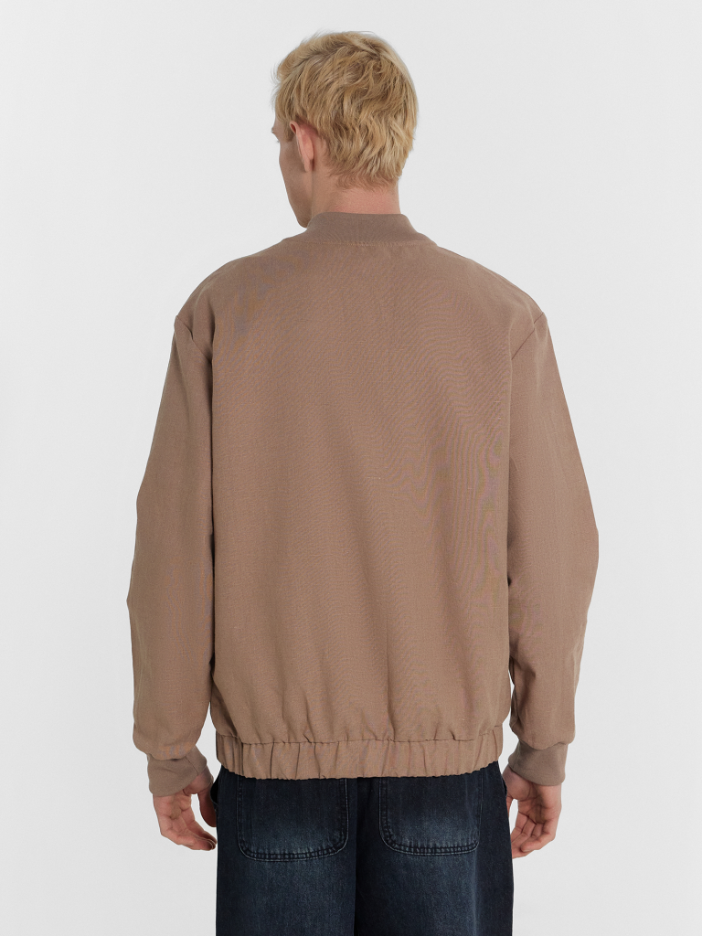 Горловина круглой формы с воротником-стойкой из рибаны. Шов втачивания воротника закрыт хб тесьмой. Рукав втачной, длинный, на манжете из рибаны.