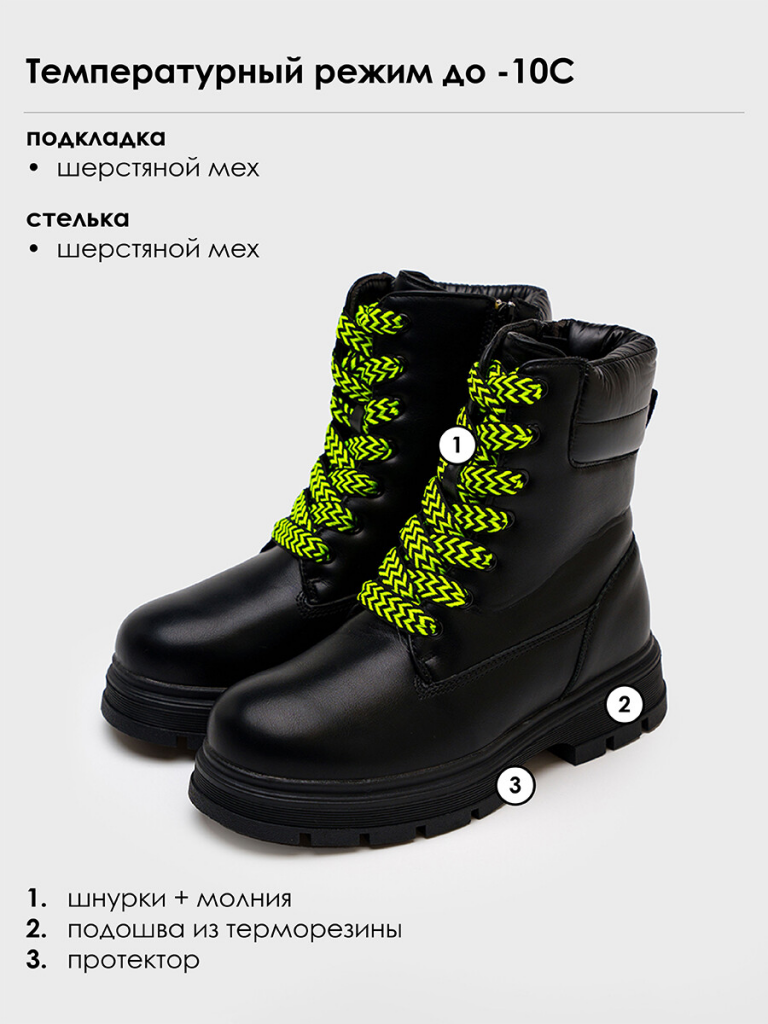 Ботинки зимние для девочки подростка. Верх обуви выполнен из искусственной принтованной кожи, обладающей высокими эксплуатационными свойствами. Подкладка и съемная стелька выполнены из из шерстяного меха 80%. Формоустойчивый задник поддерживает стопу в правильном положении. Эргономичная форма колодки обеспечивает правильное формирование стопы ребенка. Модель имеет широкие цветные шнурки и молнию изнутри. Высокая подошва из терморезины имеет глубокий протектор, не скользит и устойчива к истиранию. Рекомендованный температурный режим ( зависит от активности ребенка и поддевы под обувь) от +0°С до -10°С. Модель из капсульной коллекции OK.PTD. Соберите полный образ в едином стиле!