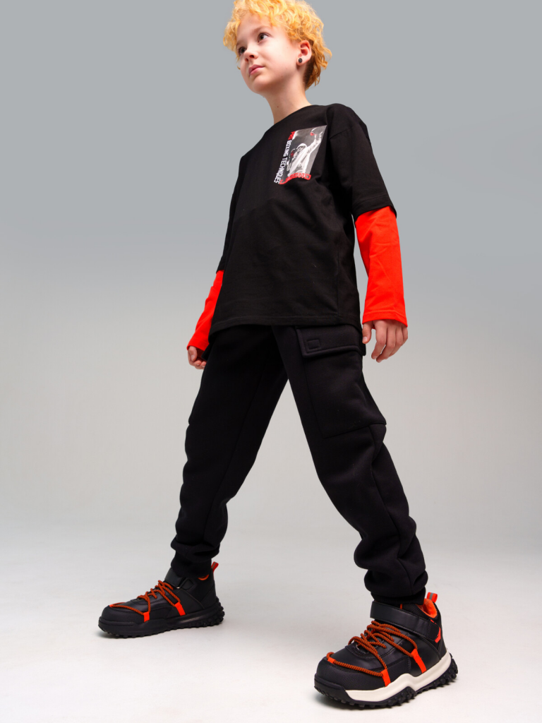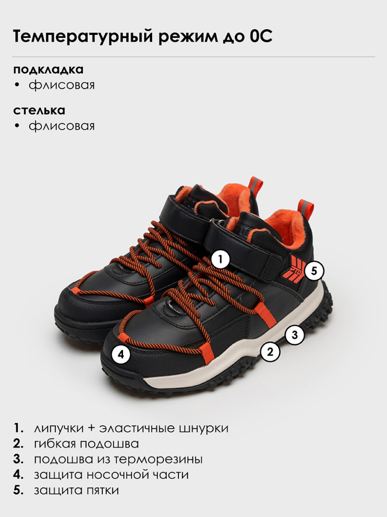 Ботинки для мальчиков черный,оранжевый
