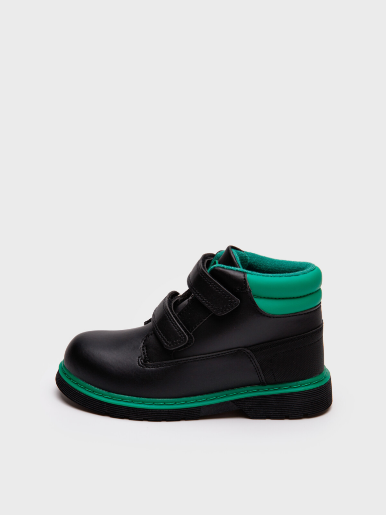 Ботинки детские демисезонные для мальчика. Верх обуви выполнен из искусственной кожи, обладающей высокими эксплуатационными свойствами. Пяточная часть усилена специальным защитным материалом • Подкладка и съемная стелька выполнены из материала c высоким содержанием валеной шерсти 50% и обладают высокими теплозащитными свойствами. • Формоустойчивый задник поддерживает стопу в правильном положении. • Эргономичная форма колодки обеспечивает правильное формирование стопы ребенка • Две липучки создают удобство при обувании • Подошва из терморезины имеет глубокий протектор, не скользит и устойчива к истиранию. • Рекомендованный температурный режим ( зависит от активности ребенка и поддевы под обувь) ( зависит от активности ребенка и поддевы под обувь) от +10°С до -5°С. Модель из капсульной коллекции MY FRIENDS. Соберите полный образ в едином стиле!