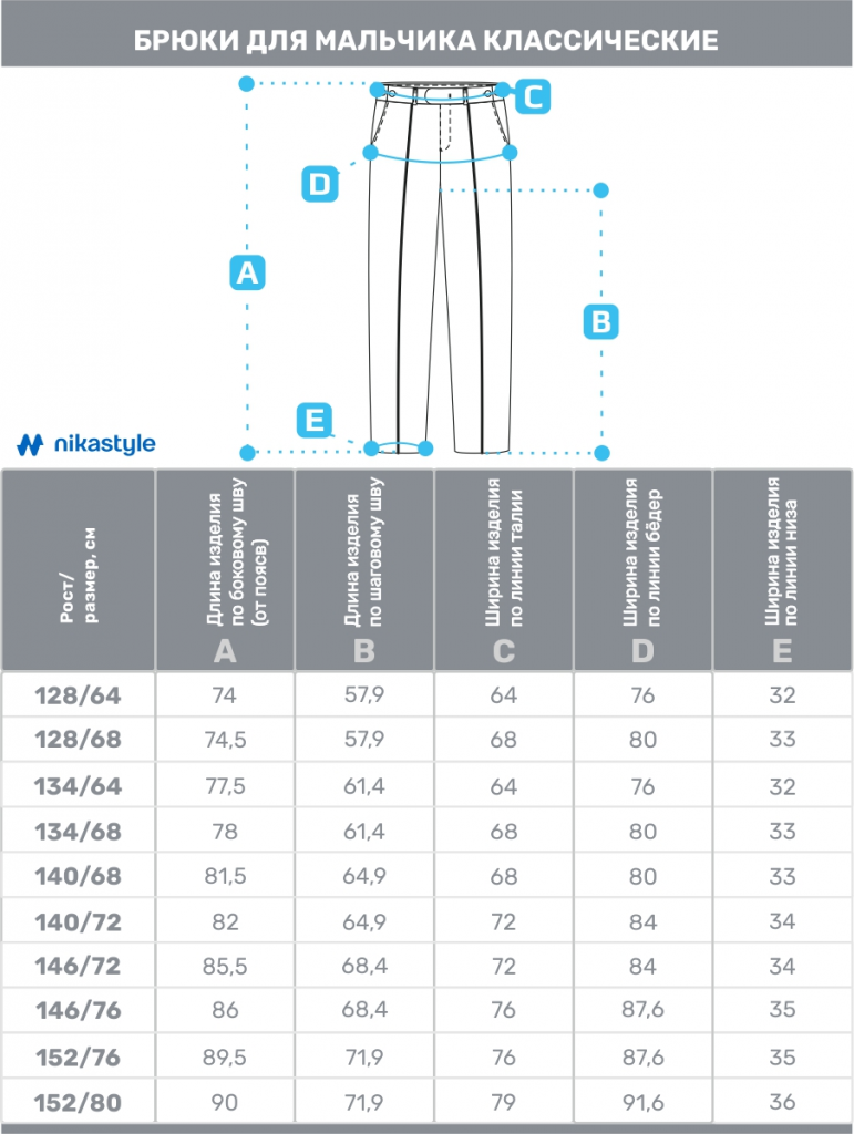 Брюки представлены в каждом росте двумя размерами и имеют дополнительную регулировку объема по талии на пуговицы.