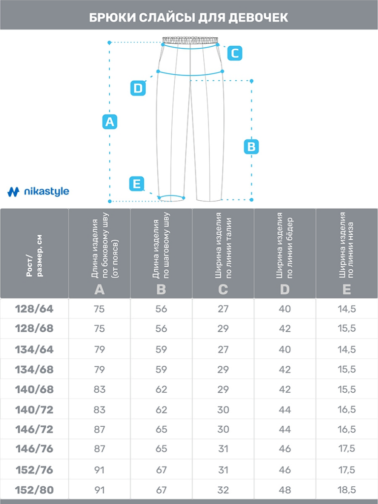 Брюки представлены в каждом росте двумя размерами.